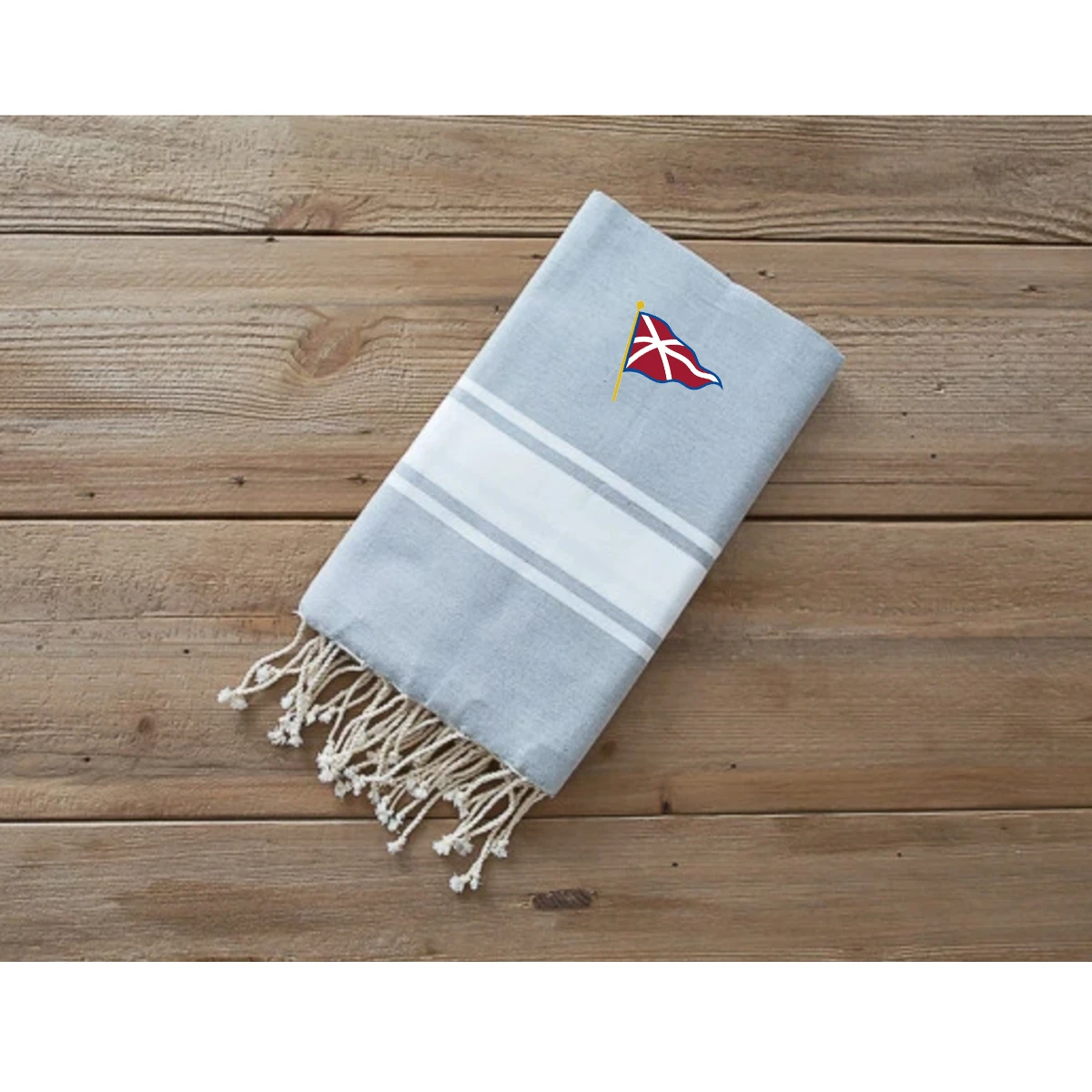 This towle has the Orient Yacht Club burgee embroidered on it.